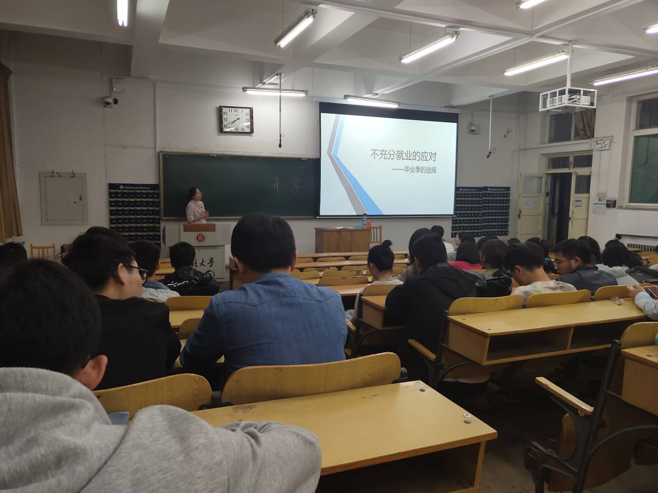 各专业的特点,具体分析行业特点与发展趋势,提醒毕业生要抓住秋季线上线下校招高峰期的就业机会,鼓励毕业生合理规划,主动出击,珍惜每一次的面试机会,主动就业,优质就业。