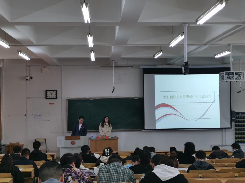 在10204H教室举办简历制作优化及面试指导讲座,此次讲座邀请到山西诚信化工企业的人力资源部经理司彩宏以及成功进入企业的往届优秀毕业生张少智、高婷作为嘉宾,到场的观众有即将毕业的2023届本科生、研究生,现场座无虚席。
