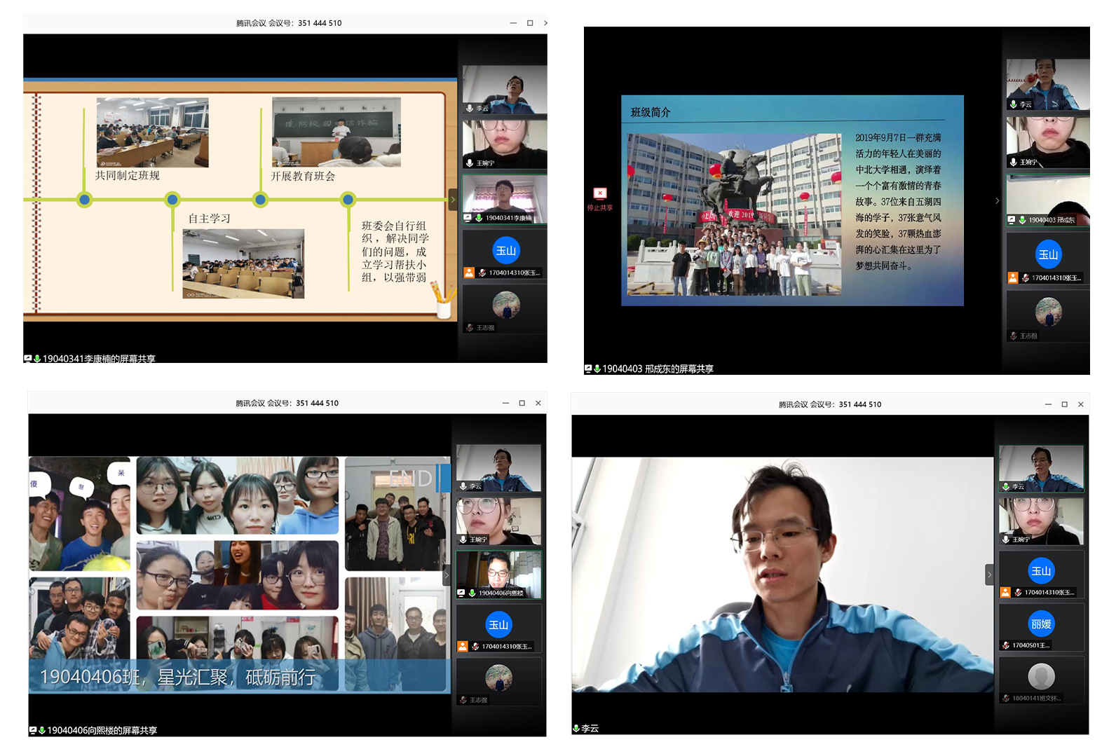参加答辩的12个班级以照片、文字、图表、数据等形式从班级凝聚力、学科竞赛、学习活动等方面全面展示学风建设成果。评委老师从思政建设、班风学风、特色活动、社会实践、临场发挥等方面进行评定,为参赛班级打分。特别是一些班级在疫情期间充分利用网络,组织宿舍、班级进行云自习,提高学习效率,体现了班级浓厚的学习氛围和认真的学习态度。
