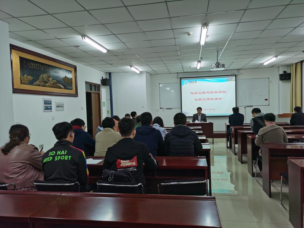 10月8日下午化学工程与技术学院20级迎新工作布置会在院科学楼206会议室成功召开。院党委书记廖海洪、副院长王海宾、焦纬洲及20级新生全体班主任、学生科全体辅导员参加,会议由院党委副书记李云主持。