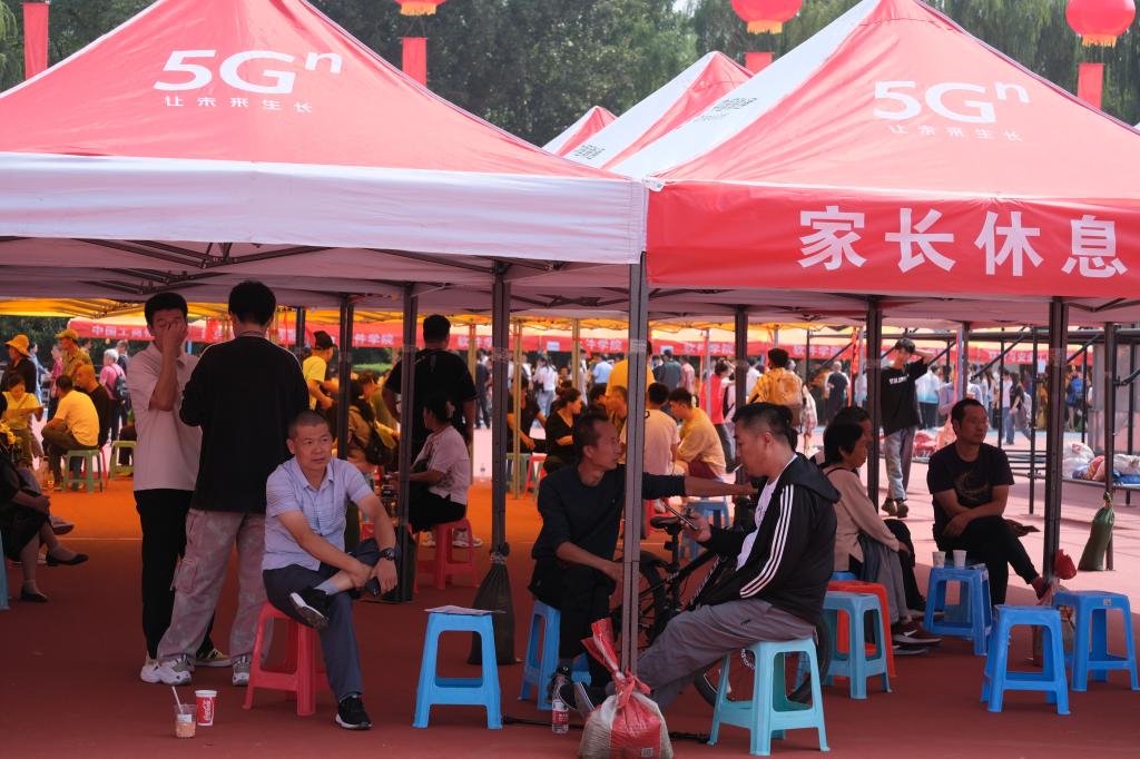 的迎新地点进行登记,随后在志愿者的带领下前往宿舍。此外,学校在行知广场贴心地设置了家长休息处,以供家长纳凉休息。