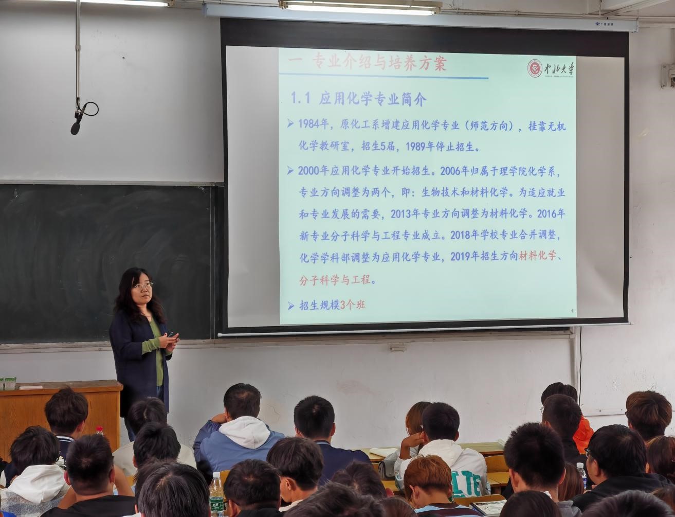 生物工程讲座中,胡楠老师以风趣诙谐的语言从生物工程发展史、学科建设、师资力量、科研平台、产业技术创新研究五个方面为所有新生做了讲解,同时也介绍了许多的杰出校友。应用化学讲座中,雷青娟老师详细地介绍了该专业的主要学习内容、基本技能、专业发展前景和未来就业方向。化工、能源、制药三个专业集体参加了由中国化工学会组织的“化工第一课”活动,本次由朱志平教授主讲,朱教授用事例讲述的方式从“化工学什么”“化工干什么”等几个方面向大家介绍了他眼中的化工,通俗精炼地介绍了化工的独特之美,让学生了解化工在经济建设和日常生活中的重要性,激励学生投身化工事业。