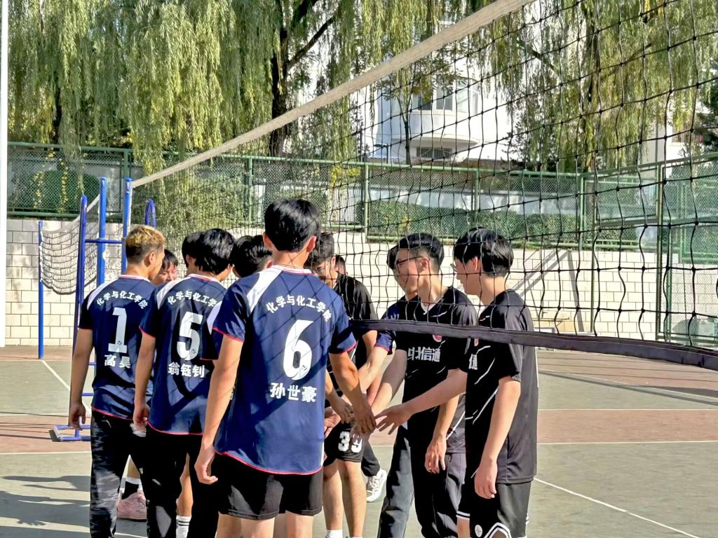 排球队积极组织,进行运动员选拔和训练,以老带新的阵容组成参赛男、女子排球队。在领队孙世豪的带领下,每天积极进行垫球、传接球、技战术等方面的训练,力求以最佳的状态和水平迎接本次的比赛。功夫不负有心人,我们的队员不负众望,男排一路过关斩将,进入决赛。