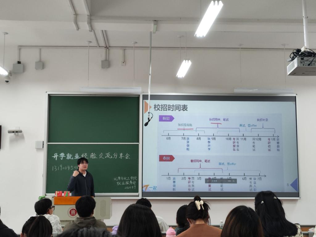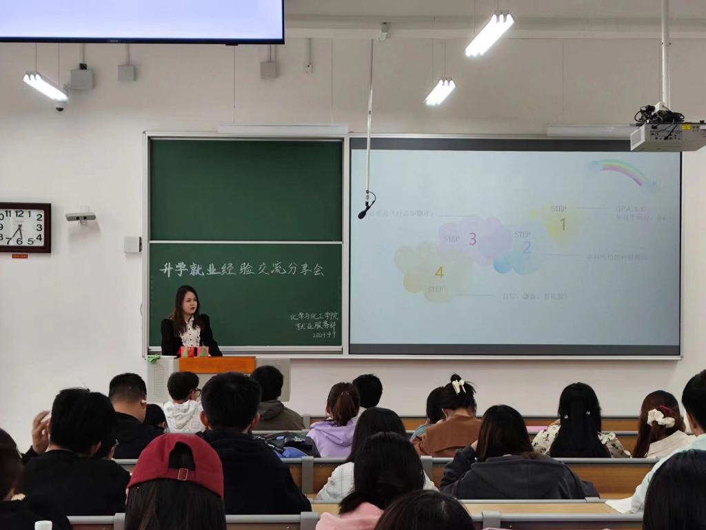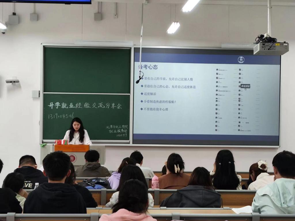 面向2021、2022、2023级学生通过线上、线下相结合的方式,召开就业、升学经验分享交流会,邀请4位优秀学生代表就就业、留学及考研等备受关注的话题展开交流分享。