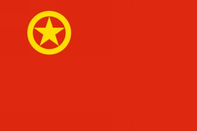 2. 制作方法是:黄圈围着的黄色五角星,缀在旗面左上方,制旗时,先将旗面对分为4个相等的长方形,将左(它的反面为右)上角长方形上下分为12等份,再以左上角长方形中心点为圆心,3等份及4等份长为半径画两圆周,两圆周之间就是黄色圆圈。再在内圆周上定出5个等距离的点,其中一点位于圆周正上方。将此5点中各相隔的两点相联成直线,此5直线之外轮廓线就是黄色五角星的外缘。