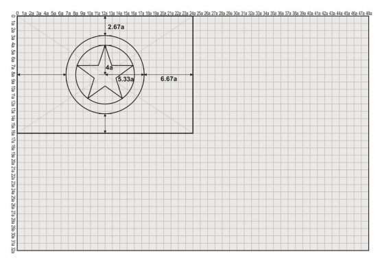 团旗尺寸坐标图(按与通用规格边长最小尺寸1:2的比例)