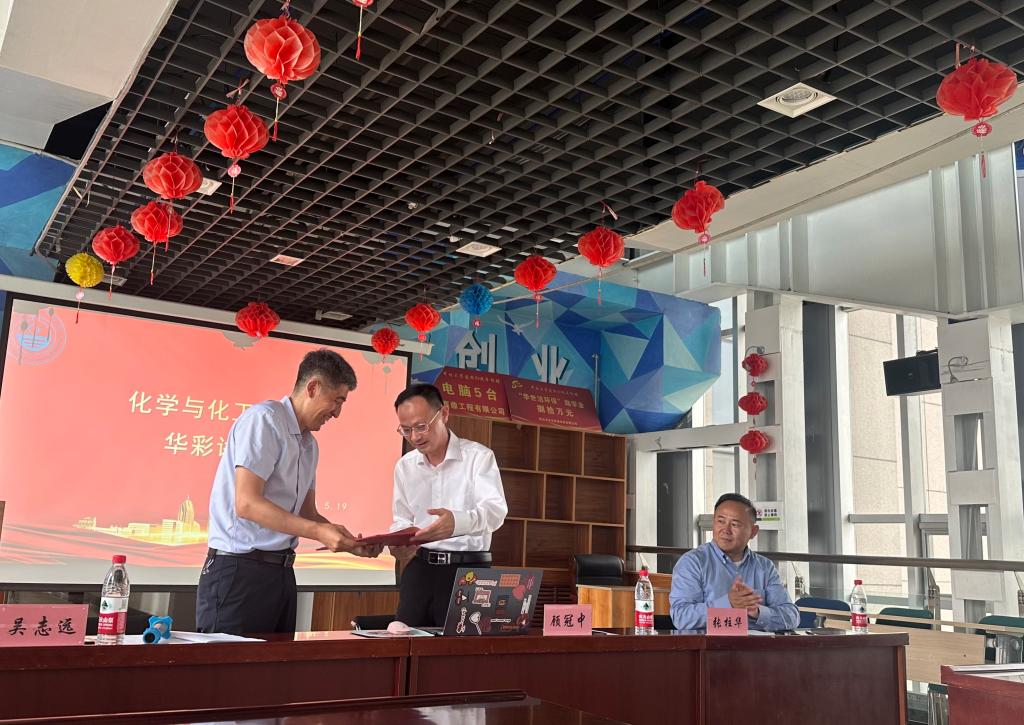 “启航导师”聘书,表彰他们在各自领域的卓越成就和对学院的突出贡献。随后,校友顾冠中分享了他在化工行业的工作经验,特别是在安全设施设计方面的专业知识。他从规则遵守、技术应用到危险源分析三个方面进行了系统讲解,他强调:“作为化工专业人士,必须全面考虑安全、环保和消防”。校友张柱华围绕自身经历,对研究生的职业规划、创新创业对策等方面进行了经验分享,鼓励学生们要有创新意识和探索精神,要结合专业知识掌握前沿技术和扩充国际视野。
