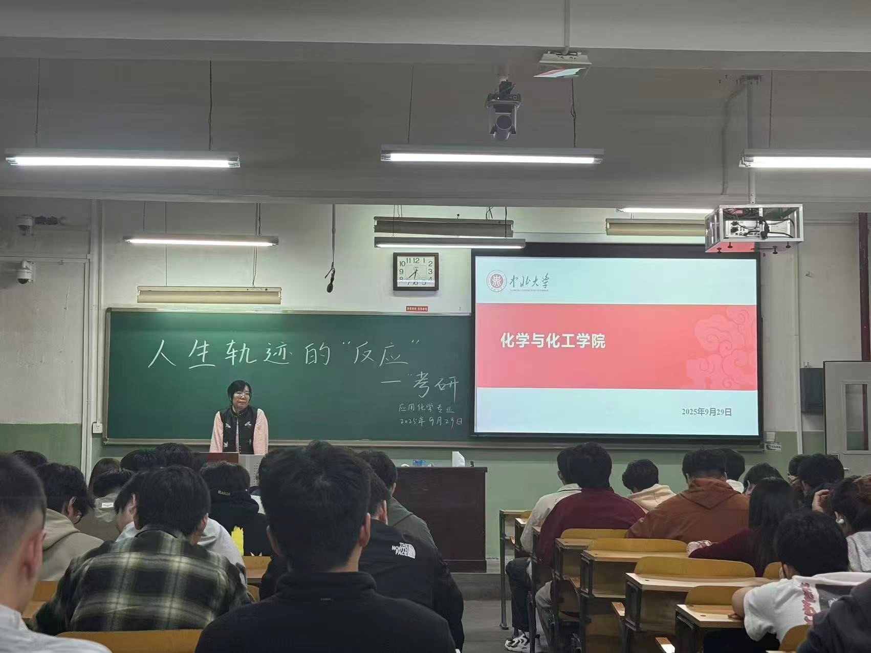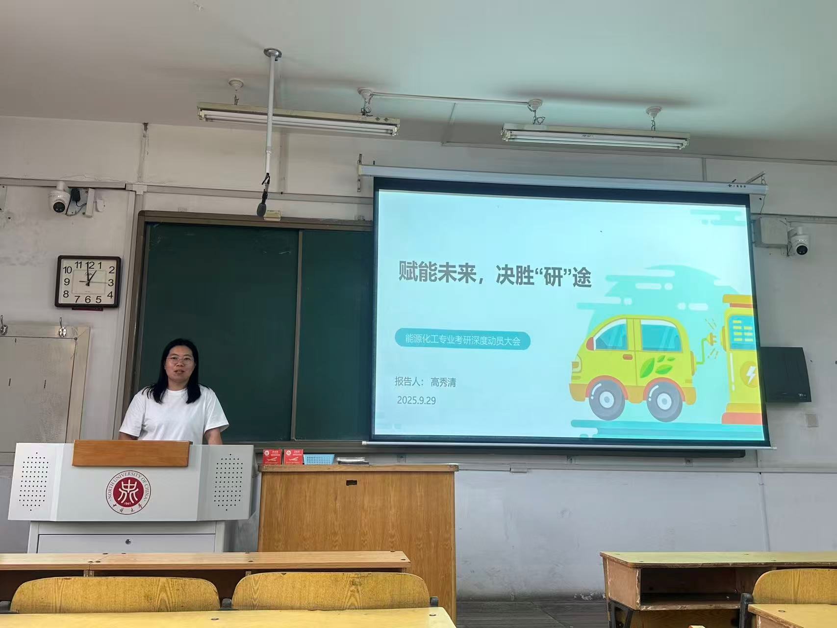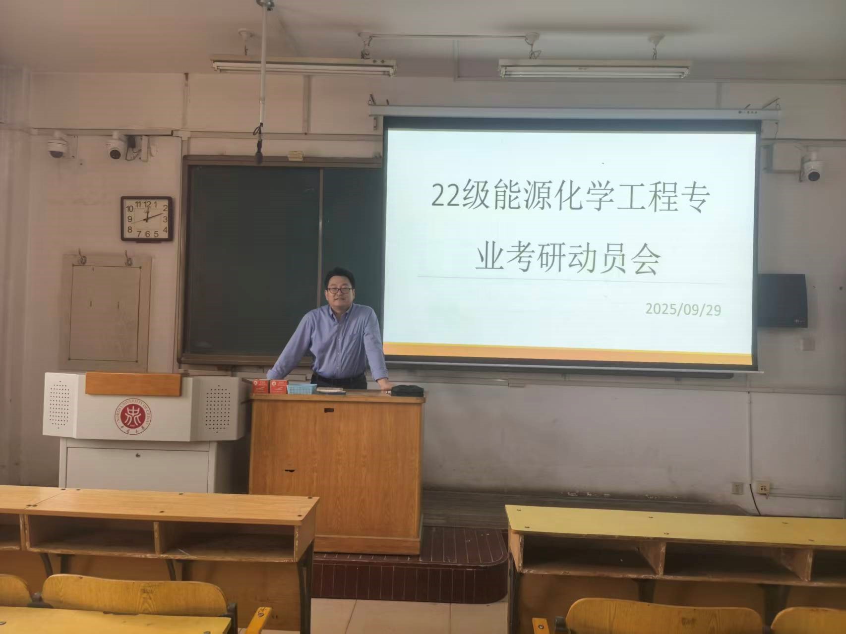 部署会结束后,化学工程与工艺、应用化学、能源化学工程、制药工程、生物工程5个专业迅速召开考研动员会。会上,各专业负责人结合本专业就业数据,详细分析不同就业方向的发展前景,同时深入解读 2026 年考研报名流程、初试科目调整、复试评分标准等政策要点;还通过数据对比,展示上一年度各专业考研录取率 —— 其中化学工程与工艺专业考研录取率达 38%,应用化学、生物工程、制药工程等专业多名学生考入 985、211 高校,用真实案例为学生树立信心。