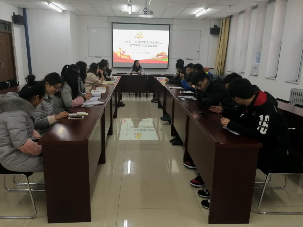 该会议由硕士研究生党支部书记贾苗苗老师主持,会议就研究生预备党员发展相关事项进行了讨论。经讨论,拟制定预备党员发展相应考核标准,希望加强预备党员考核,保证预备党员的发展质量。同时对本支部本期预备党员发展的相关工作进行了统筹安排。会议后,贾苗苗老师总结,要求支部成员认真贯彻落实十九大精神,做好预备党员发展工作。