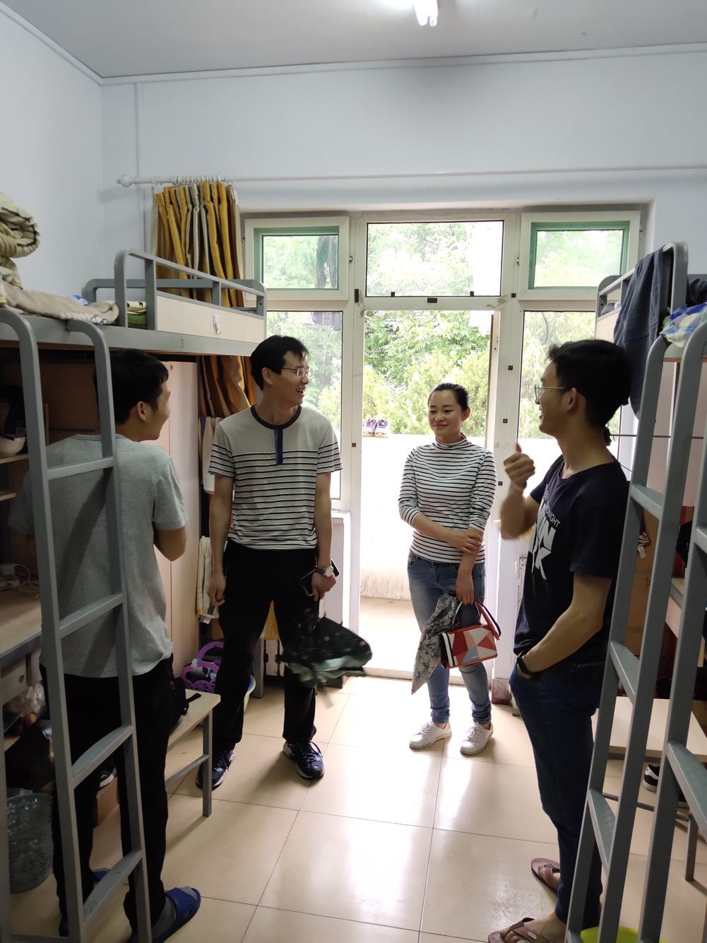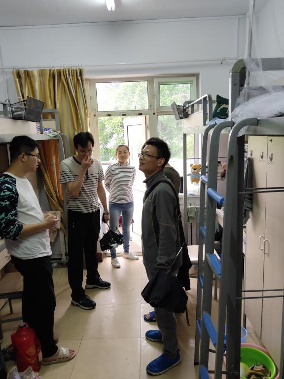 学院领导深入同学生活,走访了研究生宿舍,首先检查了同学们的住宿卫生及宿舍安全情况,强调禁止使用违章电器,时刻注意周边的安全问题。同时也指出了有些宿舍的卫生情况的不足,并表扬了内务整理好的宿舍。随后,领导和老师与同学们进行了亲切的交谈,鼓励同学们树立远大理想,珍惜在校时光,力求共同进步。告知同学们如有困难需及时向老师反映,学校学院老师会竭尽全力为同学们创造良好的学习住宿环境,给予他们家的温暖。