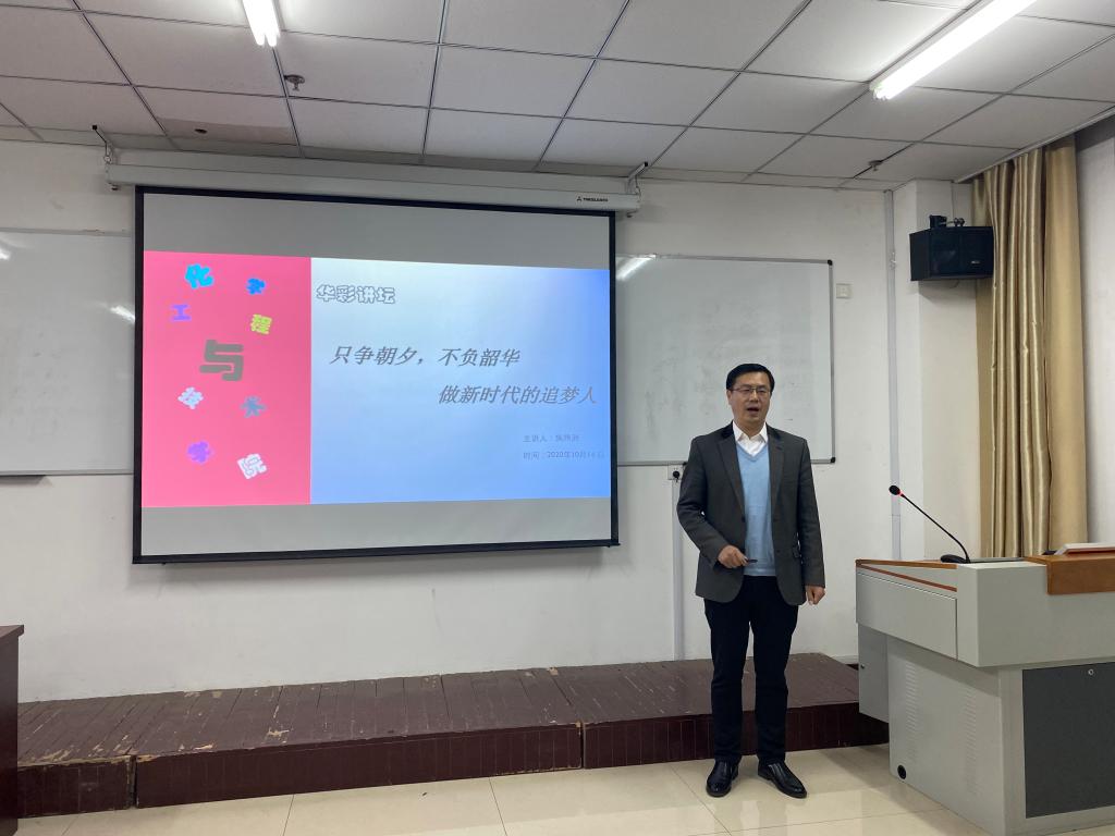于2020年10月14日晚上7:00在科学楼206举办了研究生华彩讲坛。本次讲坛有幸邀请到副院长焦纬洲老师作为主讲人,做了题为“只争朝夕,不负韶华,做新时代的追梦人”讲座。焦纬洲老师不仅在科研能力上突出,而且在研究生教育工作上经验丰富,培养了大批优秀的研究生。