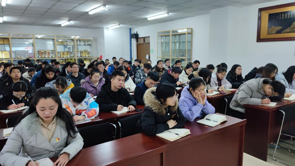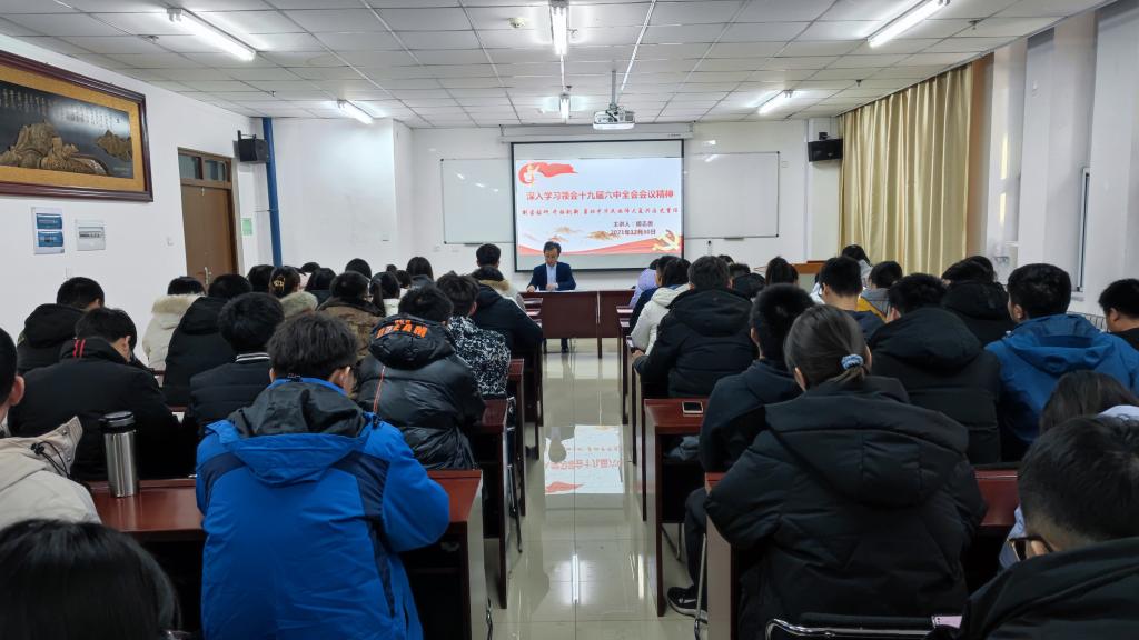 中国共产党第十九届中央委员会第六次全体会议,于2021年11月8日至11日在北京召开。全会重点研究全面总结党的百年奋斗的重大成就和历史经验问题。为认真学习贯彻会议精神,化学工程与技术学院硕士研究生党支部于2021年12月30日在科学楼C座206会议室,邀请科研院长胡志勇老师开展题为“深入学习领会党的十九届六中全会会议精神——刻苦钻研,开拓创新,勇担中华民族伟大复兴历史重任”的党课,党支部书记贾苗苗老师主持会议,硕士研究生党支部、博士研究生党支部全体党员参会。