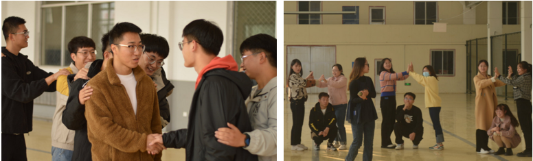 ”的小组。组员之间进行了“滚雪球”的游戏,使组员之间更加熟悉和默契。之后进行了“解开千千结”和“翻转扑克牌”两个游戏,更是将活动推向高潮,大家尽情的发挥团体的智慧,各组之间进行比拼,团结一致,在胜利那一刻大家都在欢呼雀跃,每个人脸上都洋溢着灿烂的笑容。每个组的同学也分享了自己的喜悦。