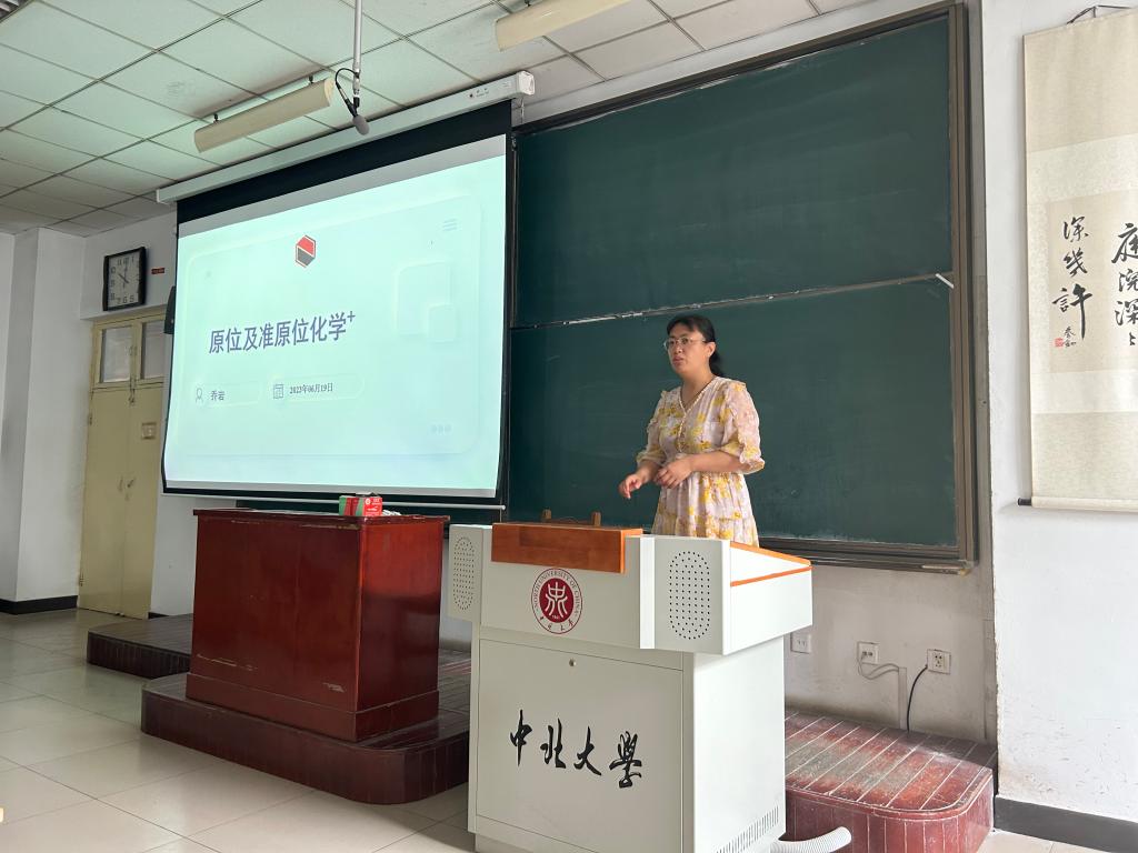 乔岩老师通过图片展示、案例分析、实际操作视频生动地向同学们讲述了如何设计和搭建不同场景下的实验室设备、如何运用金属有机框架、纳米材料等高效催化剂以及如何通过不同的反应条件来控制反应活性和选择性,实现反应优化。此外,乔岩老师还介绍了一些现实工业应用的实践案例,并且分享了她在实际操作中所面临的挑战以及如何解决这些挑战的技巧。