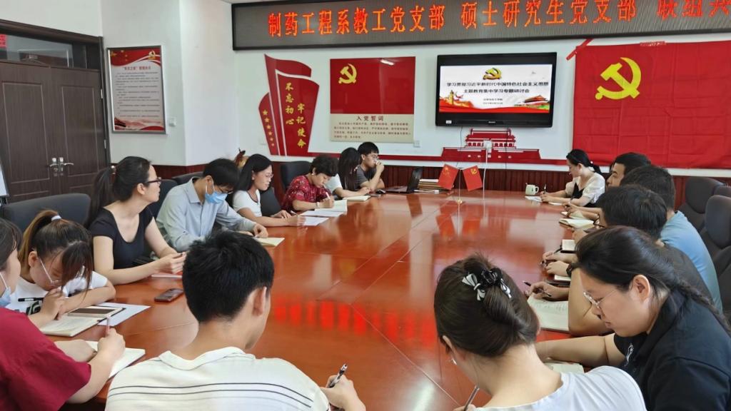 硕士研究生党支部联合制药工程系教工党支部以“联组共学”的方式,就“学习贯彻习近平新时代中国特色社会主义思想”主题教育进行学习研讨。本次会议由制药工程系教工党支部书记王立敏老师主持,支部所有党员参会。