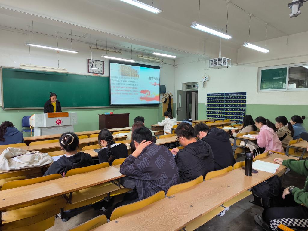 接着,为深入学习共建“一带一路”十年来取得的丰硕成果和宝贵经验,支部的四位同学从“一带一路”的提倡初心、十年经验与成果、古今丝绸之路对比以及“一带一路”的建设故事四个方面,向大家展示她们的学习总结,同时将本专业知识与“一带一路”相结合,提到在“一带一路”建设中,中国与沿线国家在生物技术领域的进一步深化合作,实现了互利共赢。